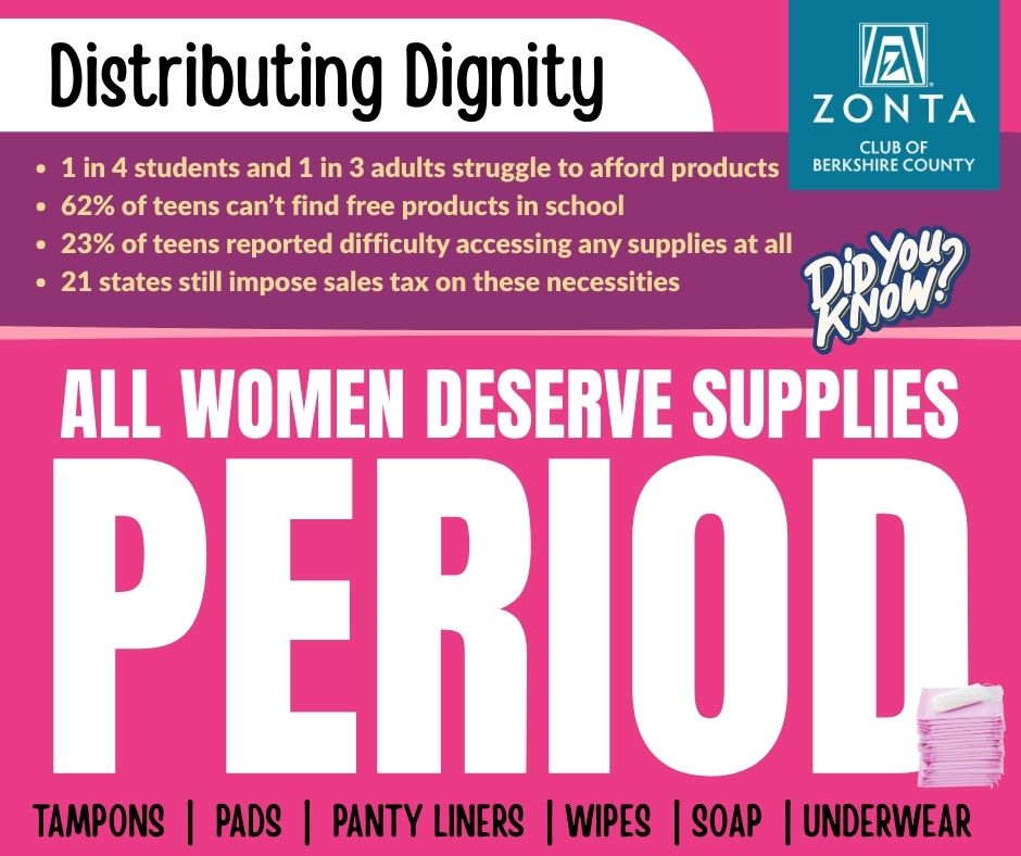 Online Credit Card Donation: If you would prefer to make a monetary donation, we will purchase items in short supply. Donate online, or make check out to Zonta Club of Berkshire County, and send to PO Box 2184, Lenox MA 01240.